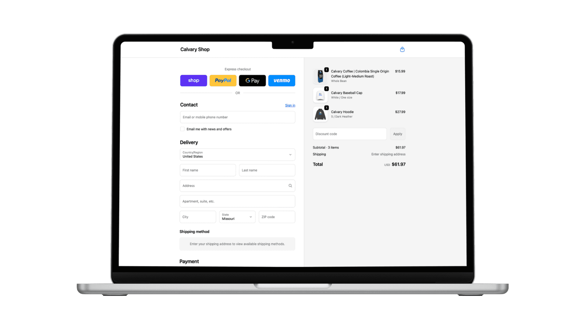 Calvary Chapel Lake of the Ozarks wanted a dedicated storefront for church merchandise that could operate independently of Sunday morning. The goal was a clean, easy-to-use shop that felt like a natural extension of the CCLOTO brand rather than an afterthought.